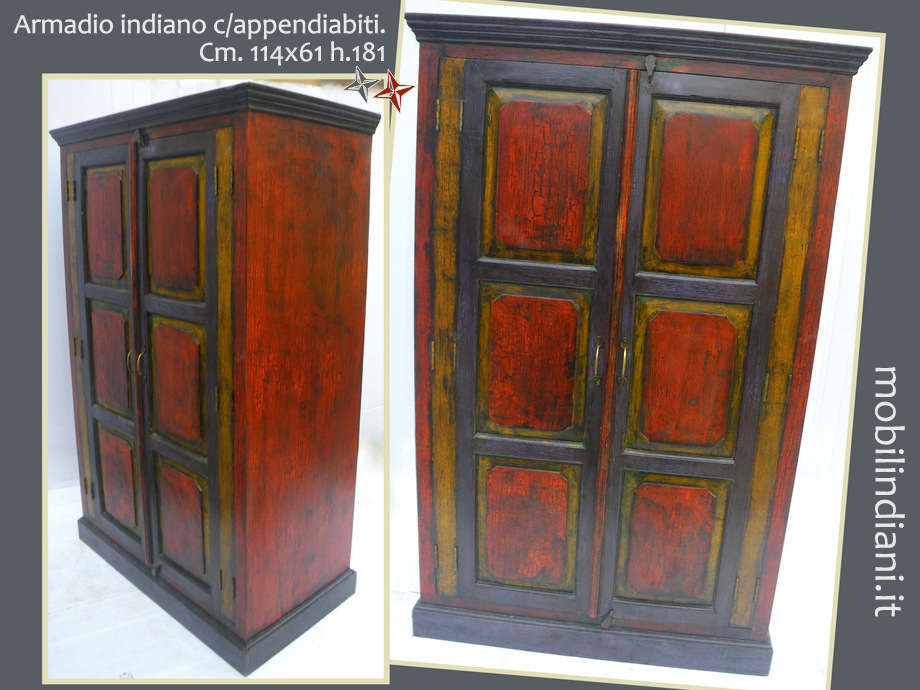 Disponibilità 1Armadio indiano vintage, tutto in legno massello sheesham (noce) finitura cracklè patina originale. Interno con ripiani e bastone appendiabiti. Pezzo unico, versatile e molto pesante! Cm.114x61 h.181 Paese India PER COSTI SPEDIZIONE CHIEDI su WhatsApp o via mail: info@mobilindiani.it