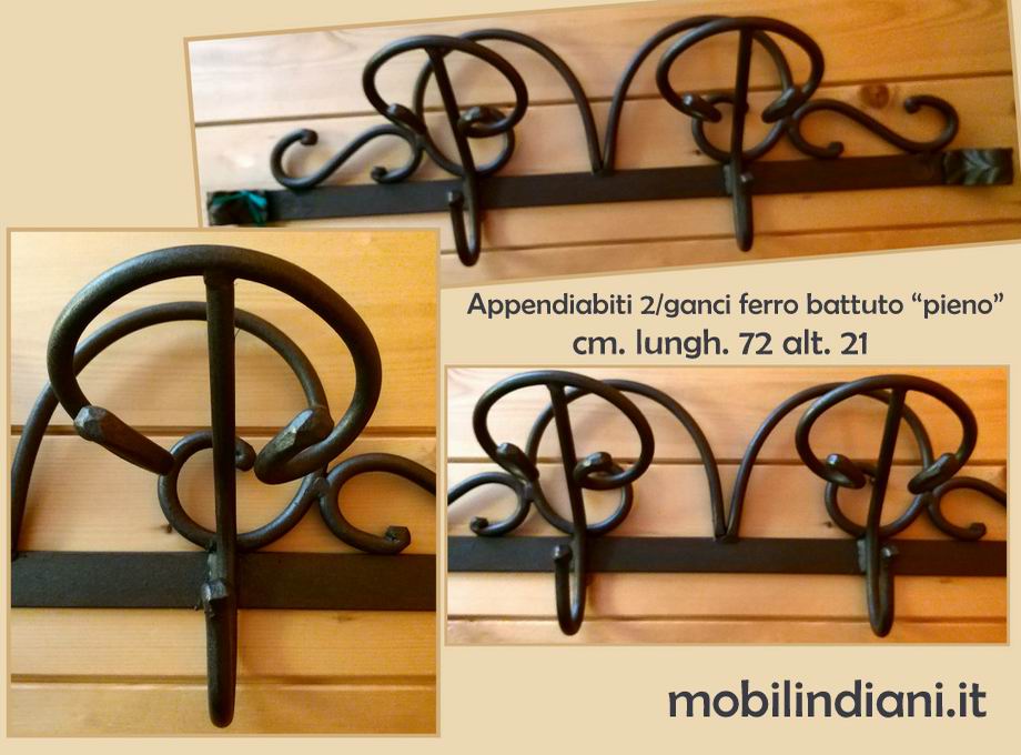 Disponibilità 1Appendi abiti etnico da fissare a parete in ferro battuto pieno, 2 ganci. Cm.lungh.72 altezza 21 sporgenza 11 Paese Marrakech, Marocco. COSTO TRASPORTO €. 29,00 iva inclusa. Per trasporto Isole invia mail a info@mobilindiani.it