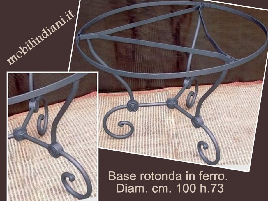 Disponibilità 1Base per tavolo rotondo in ferro battuto. Diam. cm.100 h.73 Paese Marocco. Basamento adatto per pianali con misure diam. cm.110/120 Vengono usati smalti antiruggine per interni ed esterni della linea Ferropiù. Finitura antichizzata a grana grossa, colore nero grafite. PER INFO COSTI SPEDIZIONE CHIEDI su WhatsApp o via mail: info@mobilindiani.it