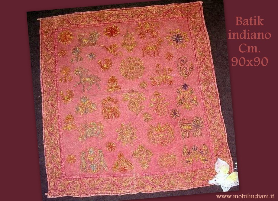 Batik indiano quadrato. Tessuto cotone pesante ricamato a mano. Cm.90x90 Paese India. COSTO TRASPORTO €. 12,81 Iva Inclusa