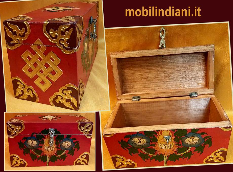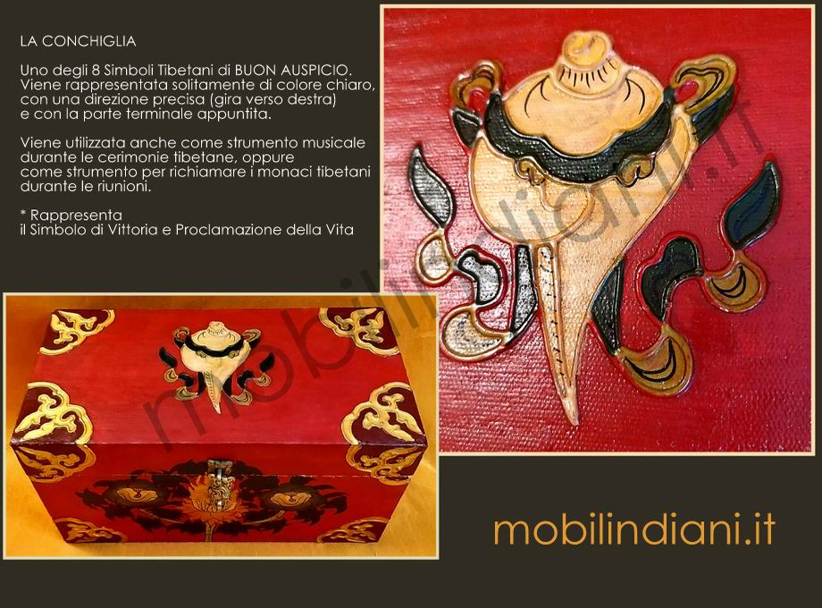 Disponibilità 1Scatola tibetana particolare...una specie di cassaforte spirituale, con due degli 8 Simboli Tibetani "la conchiglia" = Simbolo di vittoria e proclamazione della vita e "il nodo infinito" = Simbolo del ciclo infinito della vita. Misura cm.23x11 h.13,5 Tibet. COSTO TRASPORTO €. 12,81 Iva Inclusa.