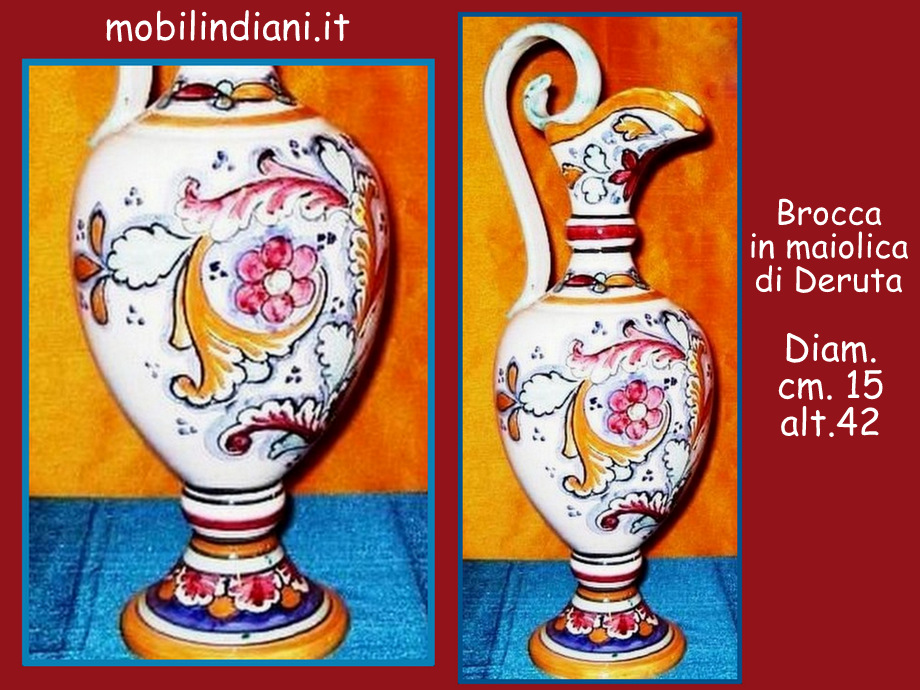 Maioliche italiane dipinte a mano. Brocca Deruta decorata a mano. Diametro cm.15 h.42 Paese di origine Deruta, Italia RITIRO PRESSO NS. SEDE COSTO ZERO - Per info chiedi su WhatsApp o mail: info@mobilindiani.it