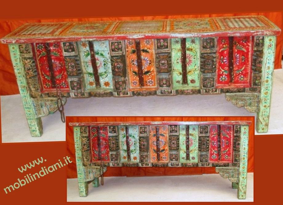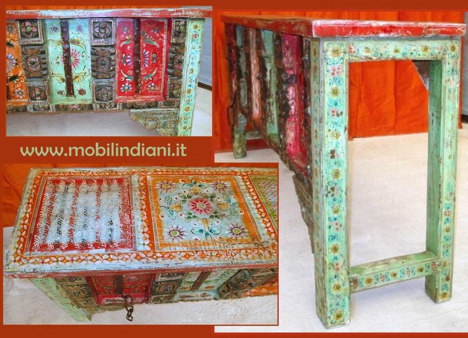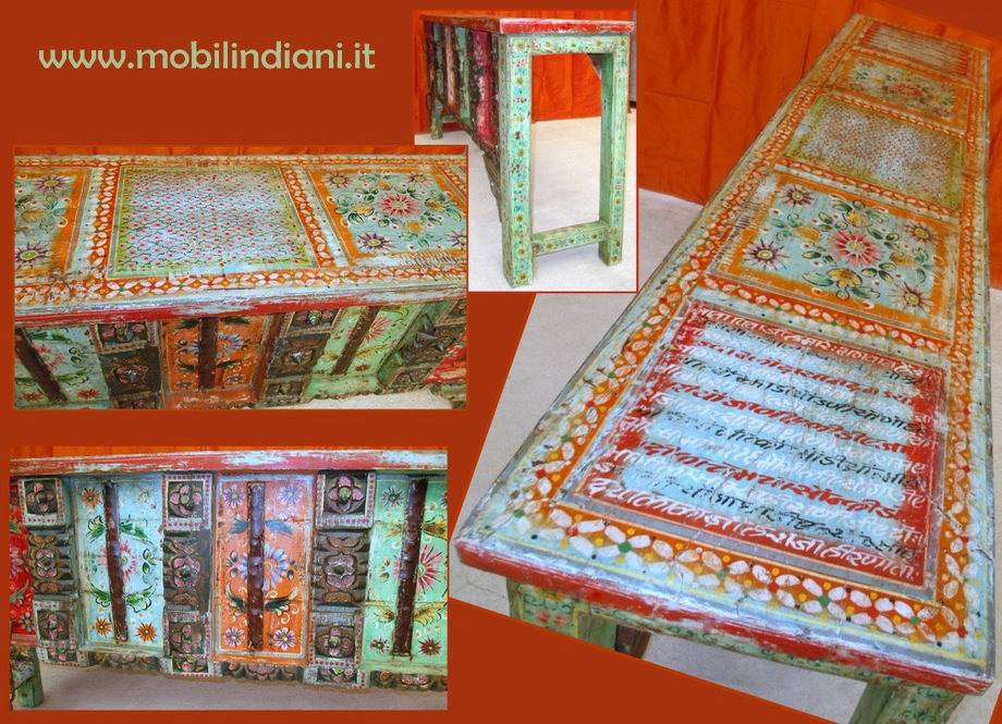 Disponibilità 1Consolle indiana, impreziosita dai tipici decori del luogo di origine, completalente dipinta a mano. Struttura in teak massello riciclato. Paese Stato Madhya Pradesh, India. Cm.182x40 h.84 RITIRO PRESSO NS. SEDE COSTO ZERO. Per info chiedi su WhatsApp o mail: info@mobilindiani.it
