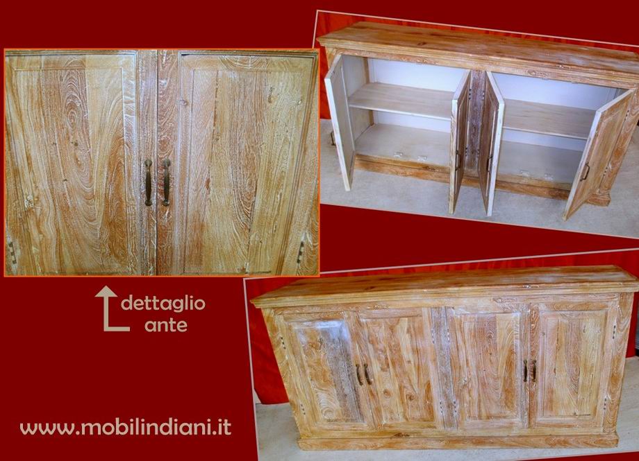 Credenza in acacia grande, 4 ante. Cm. 180 x 46 h. 93 India