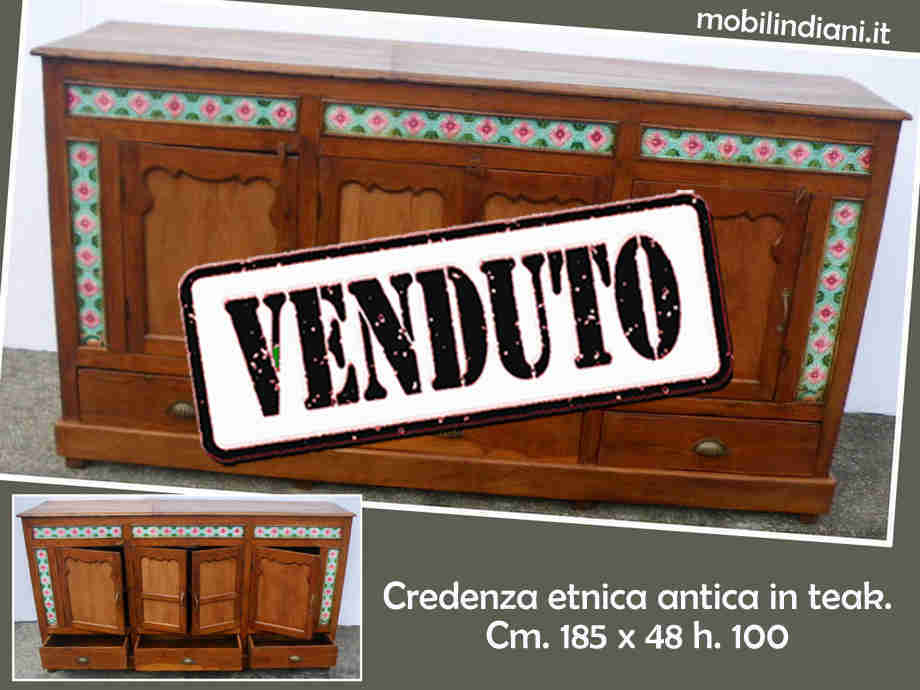 Credenza con piastrelle. Cm.185x48 h.100 Teak massello. India