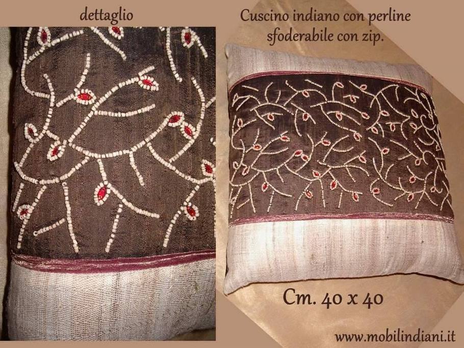 Disponibilità 1Cuscino etnico in lino, applicazioni in perline, completo di imbottitura. Bicolor marrone/beige, sfoderabile con cerniera. Cm. 40x40 Paese India. COSTO TRASPORTO €. 12,81 Iva Inclusa