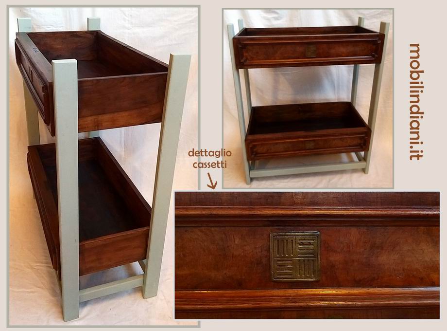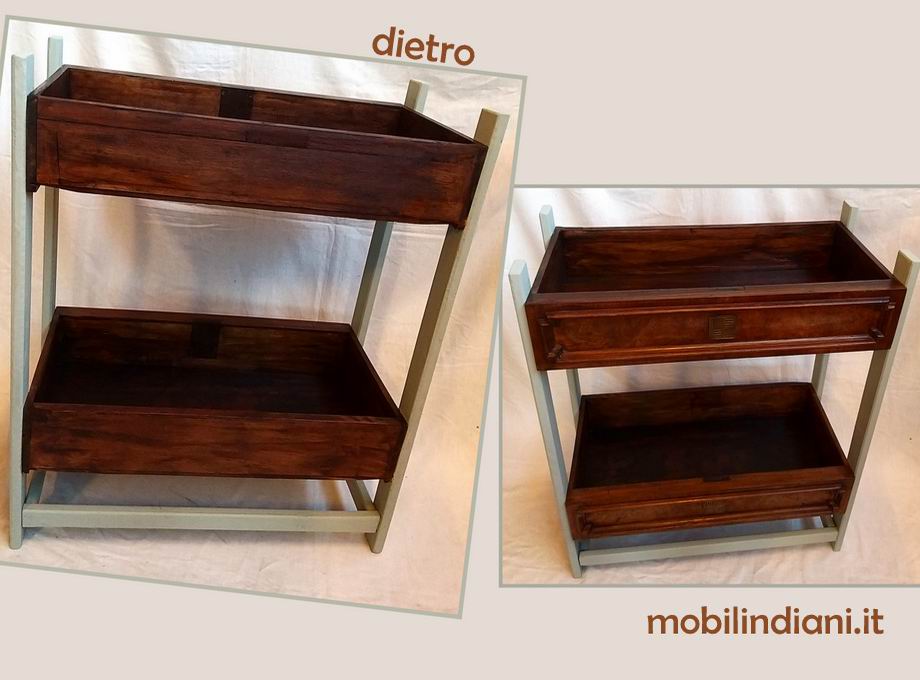 Mobiletto fatto a mano, 2 cassetti antichi. Cm..70,5x36 h.80