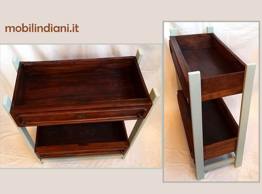 Mobile contenitore artigianale. Realizzato con 2 cassetti antichi recuperati da un cassettone dei primi '900 Struttura in legno massello, colore grigio chiaro. Cm.70,5x36 h.80 Italia. PER INFO COSTI SPEDIZIONE CHIEDI su WhatsApp o via mail: info@mobilindiani.it