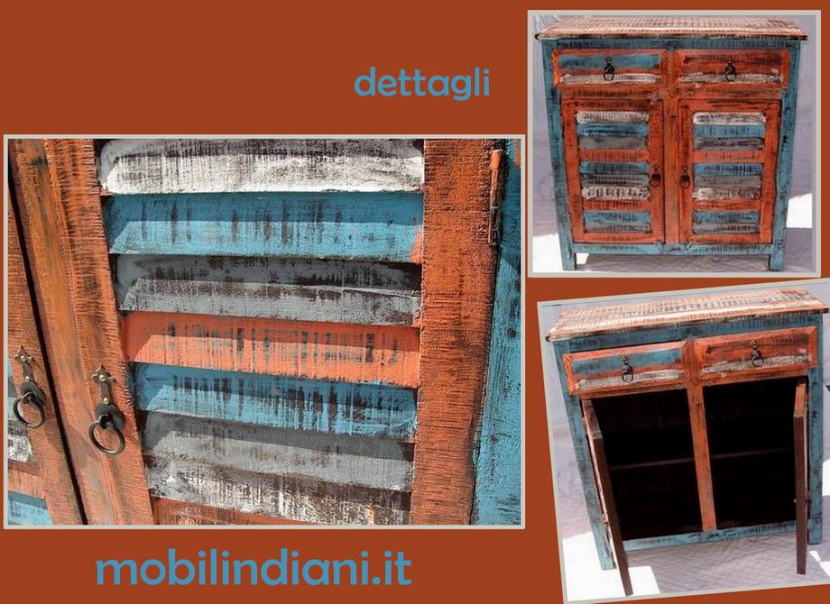 Disponibilità 1Credenza etnica con ante a persiana, stile vintage in teak riciclato. Cm.92x40 h.101 Adatto per seconda casa. Origine Rajasthan, India PER INFO COSTI SPEDIZIONE CHIEDI su WhatsApp o via mail: info@mobilindiani.it