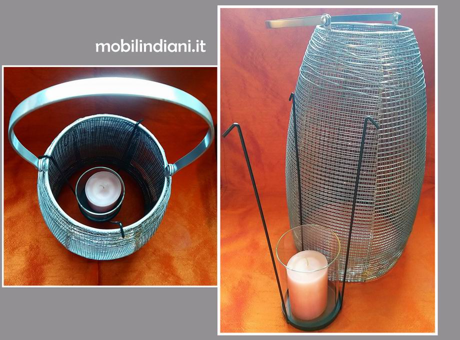 Disponibilità 1Lanterna porta candela in ferro retato, colore SILVER, completa di vaso in vetro dove alloggiare il cero. Diam.23 h.60 COSTO TRASPORTO €. 12,81 Iva Inclusa. Per costi trasporto Isole, chiedi info su WhatsApp o mail: info@mobilindiani.it