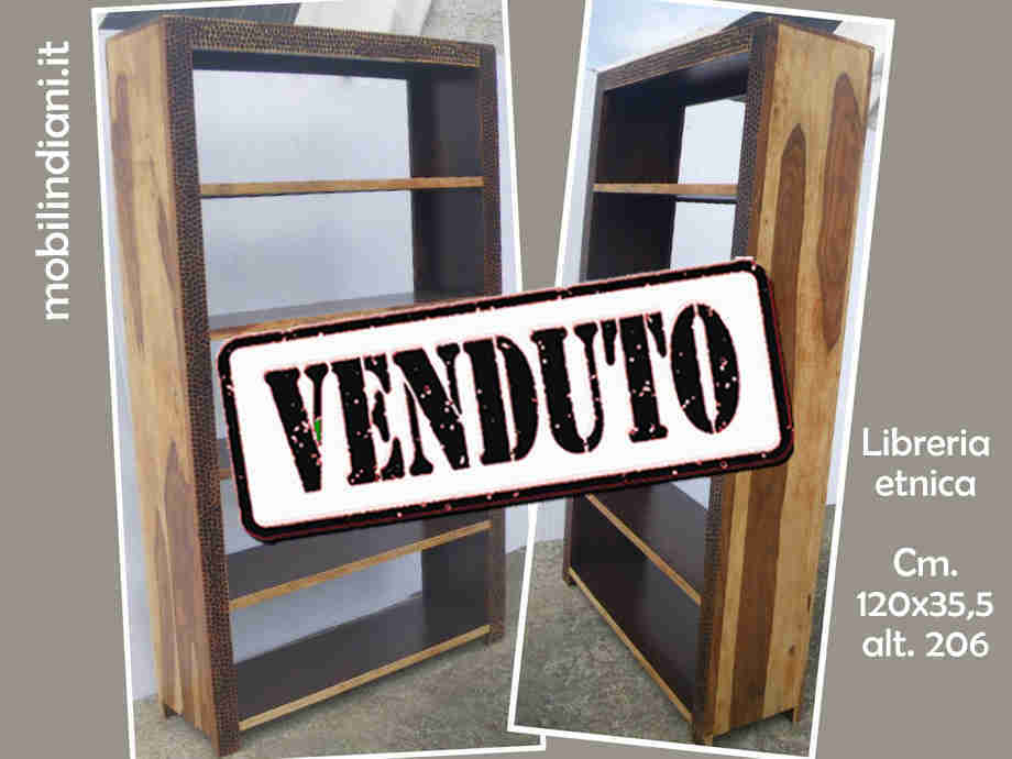 Disponibilità 0Mobile soggiorno orientale. Libreria etnica alta in sheesham (noce) colore naturale. Cm.120x35,5 h.206 Paese India