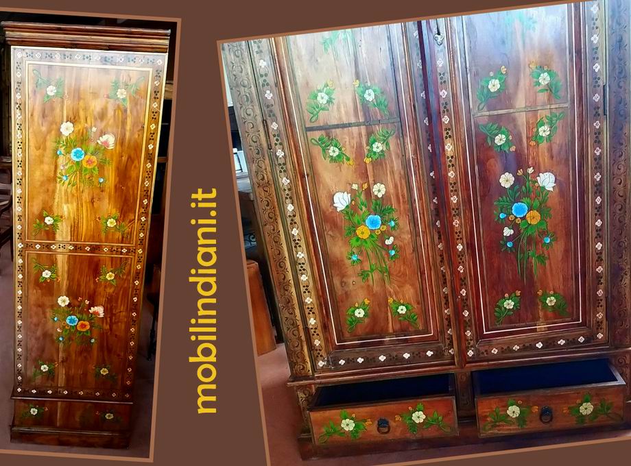 Disponibilità 1Armadio indiano dipinto anche internamente (vedi foto) Provvisto di bastone appendiabiti in ferro + 1 ripiano movibile + 2 cassetti esterni. Cm.110x60 h.192 Legno massello palissandro. Paese Rajasthan, India PER INFO COSTI SPEDIZIONE CHIEDI su WhatsApp o via mail: info@mobilindiani.it