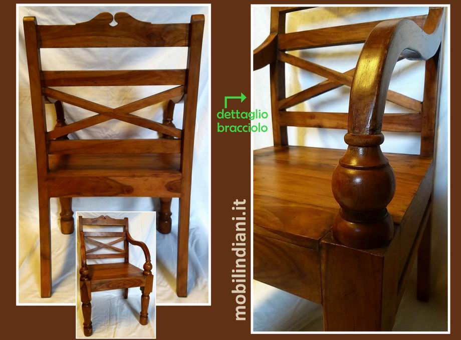 Disponibilità 6Poltroncina indiana con braccioli. Mis. seduta cm.53 - prof.45 - Alt.90/schienale. Legno massello sheesham (noce) Paese Rajasthan, India PER INFO COSTI SPEDIZIONE CHIEDI su WhatsApp o via mail: info@mobilindiani.it