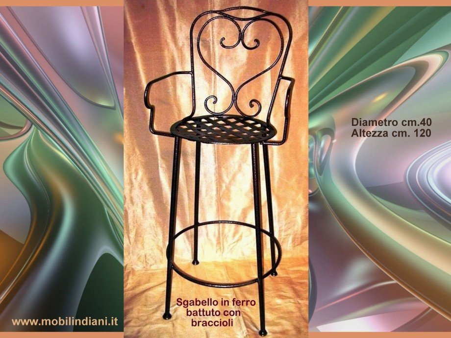 Disponibilità 1Sedia alta in ferro battuto colore brunito con braccioli. Diam. seduta cm.40. H.75/seduta - H.93/braccioli 93 - H.120/schienale. Paese Italia RITIRO PRESSO NS. SEDE COSTO ZERO. Per info chiedi su WhatsApp o mail: info@mobilindiani.it