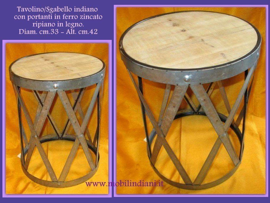 Disponibilità 2Sgabello etnico con piano in legno colore naturale e portanti in ferro zincato, adatto anche per l'esterno. Diam. cm.33 h.42 Paese India. COSTO TRASPORTO €. 17,93 iva inclusa. Per costi trasporto Isole, chiedi info su WhatsApp o mail: info@mobilindiani.it