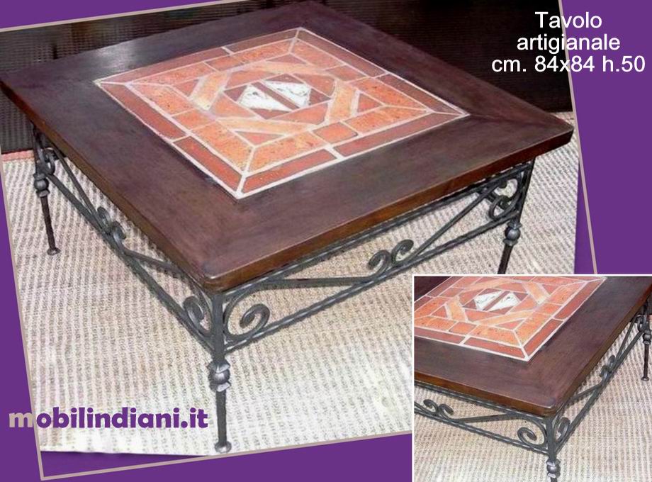 Disponibilità 1Tavolino quadrato realizzato con mattoni in cotto, cornice in faggio e base in ferro battuto pieno (vedi foto) Cm.84x84 h.50 Origine Italia. Artigianato italiano RITIRO PRESSO NS. SEDE COSTO ZERO - Per info chiedi su WhatsApp o mail: info@mobilindiani.it
