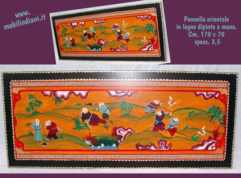 Pannello orientale in legno dipinto a mano. Cm.170 h.70 Cina